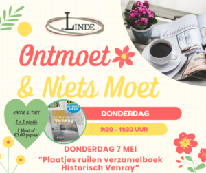 Thema 7 mei: “plaatjes ruilen van het verzamelalbum “Historisch Venray” van de Albert Heijn”.